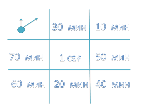 Циферблат бойынша уақытты анықтайды Уақыттың өлшем бірліктерін( минут, сағат,апта, күн, апта,ай) ажырата алады Уақыттың арақатынасын ажырата алады Уақыт бірліктерін өрнектей алады |