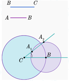 A1BC және A2BC үшбұрыштары – ізделінді үшбұрыштар. |