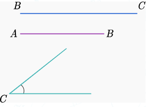 Мысал 1: Үшбұрышты бір бұрышы және біреуі оған іргелес емес екі қабырғасы бойынша салу. ABC үшбұрышын берілген BC және AB қабырғалары мен ∠C бойынша саламыз.
