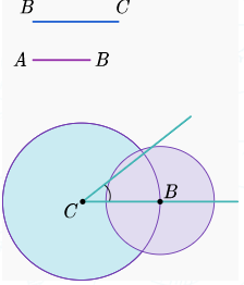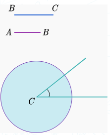 Радиусы BC-ге тең, центрі C бұрышының төбесінде болатын ω1 шеңберін сызамыз.