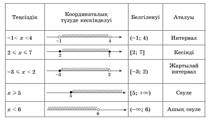 6.2.2.7сан аралықтарын жазу үшін белгілеулерді пайдалану; 6.2.2.8 сан аралықтарды кескіндеу |
