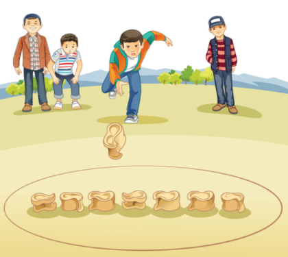 Топтық жұмыс. Суретте қандай ойын түрі бейнеленген? Заттың санын білдіретін сөздерді қатыстырып, сурет бойынша әңгіме құра. Сан есімдерді ата 1-топ