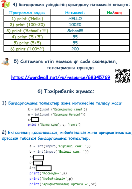 6.3.2.1 Python тіліндегі сызықтық алгоритмдерді жазу; |
