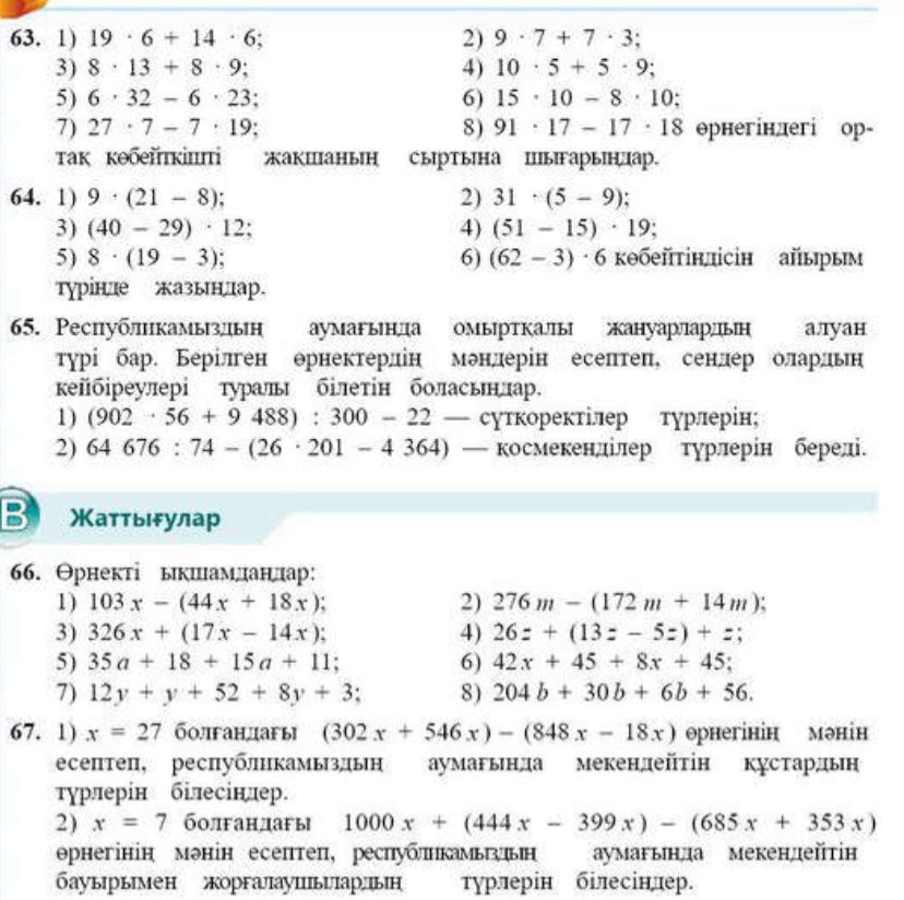 Бүгін біз сабақта әріптердің берілген мәндері бойынша әріпті өрнектердің мәндерін табуды үйренеміз. 1-тапсырмаӨрнегіндегі ортақ көбейткішті жақшаның сыртына шығарыңдар.