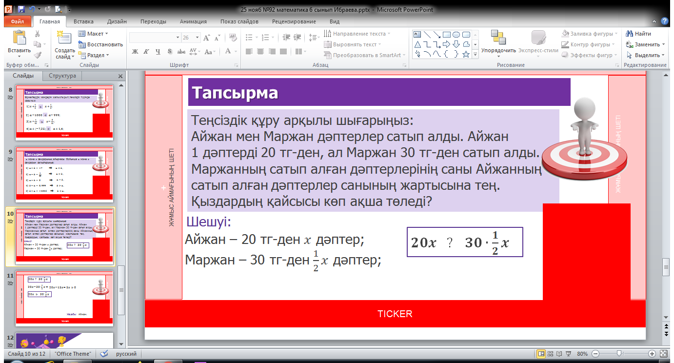 Ұйымдастыру сәті Оқушылармен амандасу, түгелдеу. Ынтымақтастық атмосферасын қалыптастыру Үйге тапсырмасын тексеру: №846, №847 «Жұптас» әдісі бойынша екеу ара дәптерлерін алмасу арқылы, тақтадан жауаптарын тексереді.