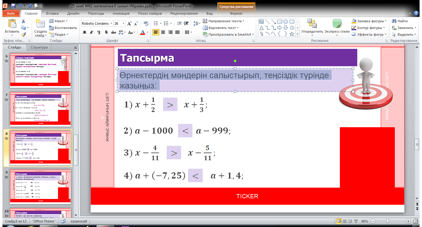 Ұзақ мерзімді жоспар бөлімі: 6.3В Бір айнымалысы бар сызықтық теңсіздіктер |