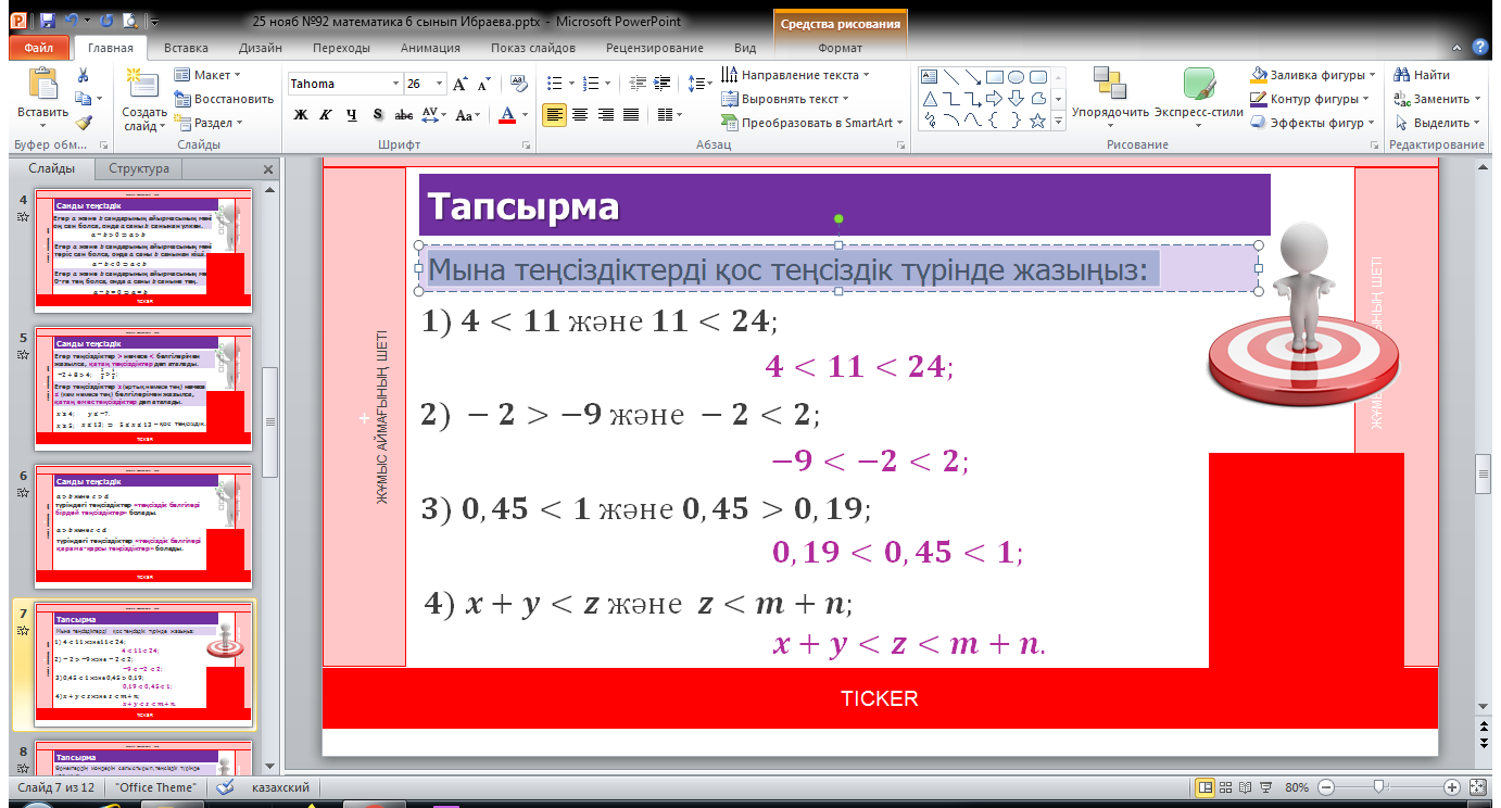 Тапсырмалар: №1. Мына теңсіздіктерді қос теңсіздік түрінде жазыңдар.
