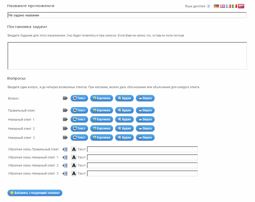 - құрастырмалық өзара бірлескен әрекет: ресурс экрандық нысандарды құруға және іске келтіруге, сонымен бірге оларды басқаруға мүмкіндік береді. Мысалы, пайдаланушылар жаңа тармақтар және мультимедиялық қосымшаның бар құрылымын кеңейте отырып, барлауға гиперсілтеме жасауға мүмкіндік береді.;