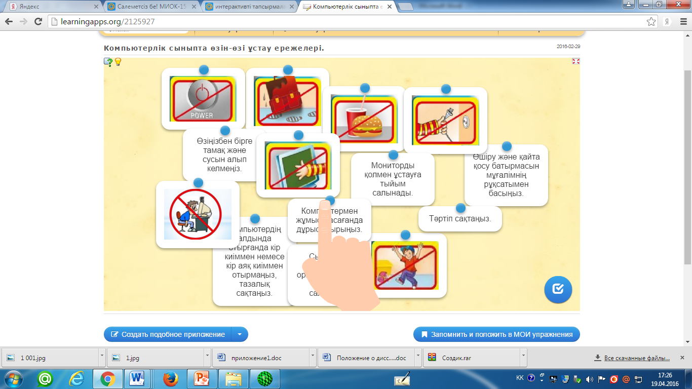кері байланыс: ресурс пайдаланушыға орындаған тапсырмасының дұрыстығын бағалап жауап береді. Бұл жауаптар экраннан көруге болады.