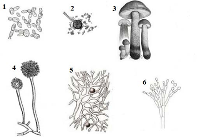 1. Саңырауқұлақтың құрылысын атайды. 2. Саңырауқұлақтардың құрылысына сай қызметін анықтайды. 3. Суретте берілген №3-4 саңырауқұлақтардың түрлерін сипаттайды. |