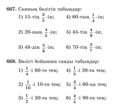 санның бөлігін және бөлігі бойынша санды табуды түсіну; санның бөлігін және бөлігі бойынша санды табуға берілген есептерді шығара алу;. |