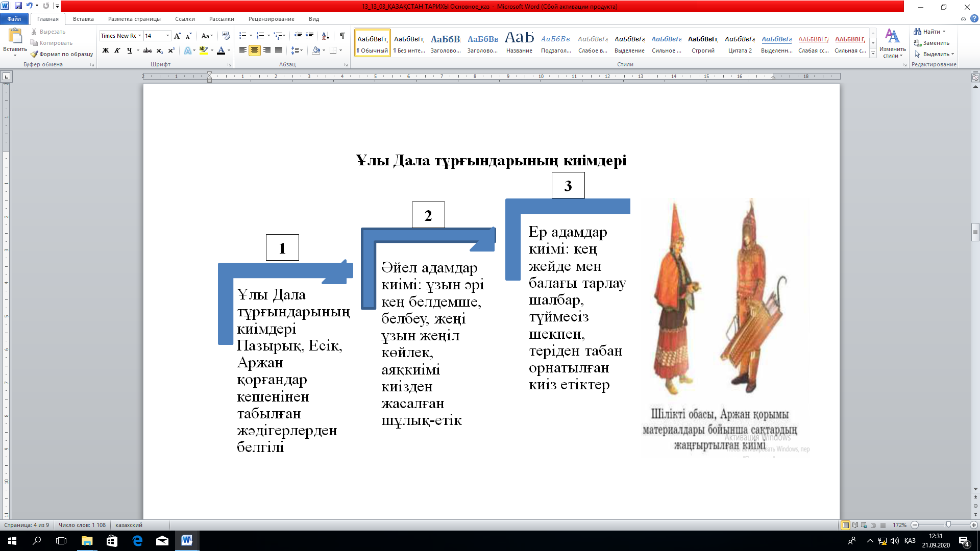 20. Сақтардың киімі туралы түсінік беретін жазба мәтіндер сақталған