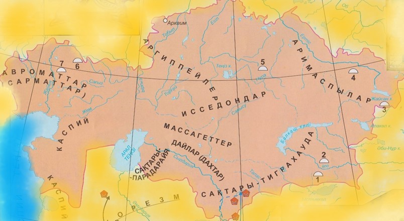 1. Аримаспылар; 2. Исседондар; 3. Аргиппейлер