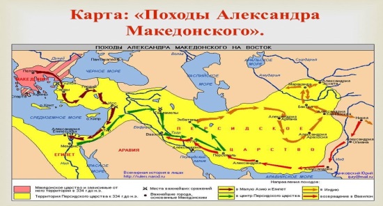 Дескриптор: 1.Македонскийдің жаулап алған жерлерін біледі 2.Маңызды оқиға болған жылдар туралы біледі |