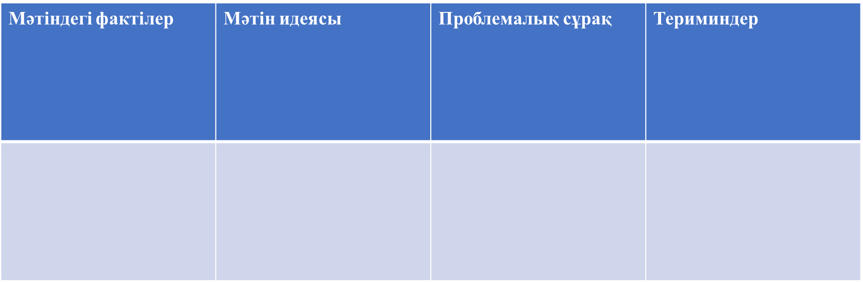 Тапсырма. 1-мәтінді оқып, кестені толырады.