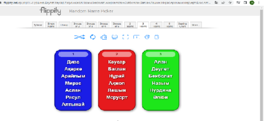 Оқушылар өзіне таңдаған түсті алып, онда жазылған жазуды оқушылардың көмегімен табады. |