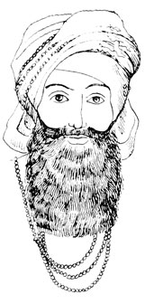картон. Чалма представляла собой кусок ткани, но укладывали эту ткань, в отличие от тюрбана, плоскими жгутами. Тюрбан и чалма богатых сановников украшались драгоценными камнями, чаще всего - сердоликом, аметистом, сапфиром. Спереди надо лбом часто прикалывали брошь, которая придерживала пучок перьев райской птицы. Головные уборы простого народа были скромнее, из более низких сортов ткани. Кроме этих головных уборов мужчины носили небольшие бархатные шапочки, напоминавшие тюбетейки, головные лобные повязки, колпаки из льняной ткани и войлока, шапочки типа современных пилоток.