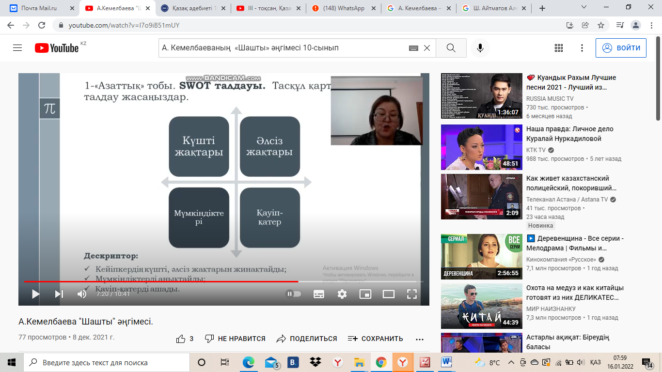 «Шашты» әңгімесіндегі басты кейіпкерлерді даралайтын қасиеттерді анықтаңыз. SWOT талдау әдісімен Тасқұл қарттың даралық образына талдау жасаңыздар.