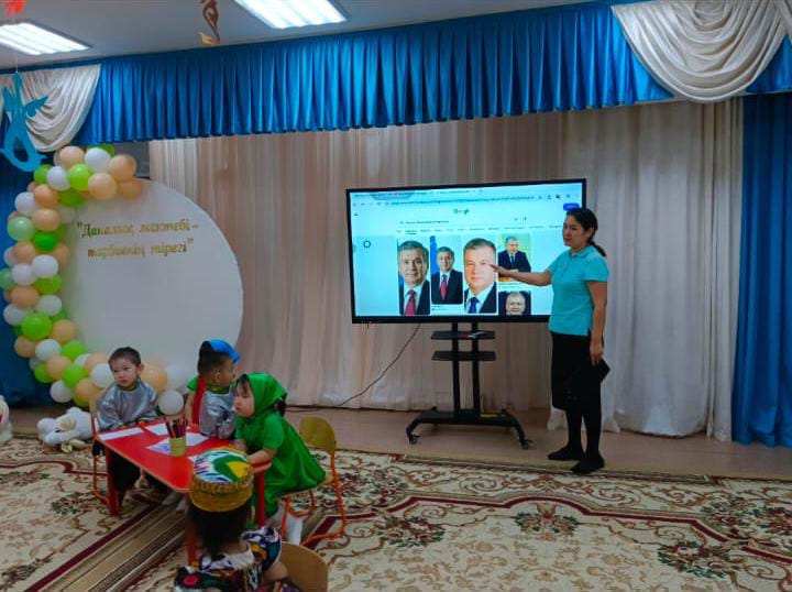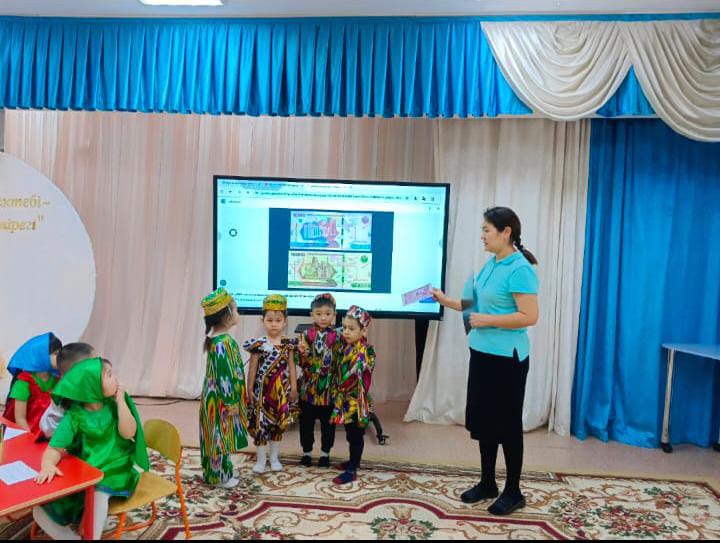 Тәрбиеші балаларға Өзбекстан жайлы кішкене ақпарат береді