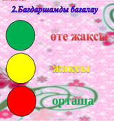 Рефлексия«Бағдаршам» Қызыл түс – түсінген жоқпын; Сары түс – сұрақтар бар;Жасыл түс – барлығы түсінікті |