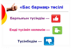 Бағалау – оқушылардың материалды меңгеру деңгейін тексеруді жоспарлаймын. Оқушылардың білімдерін саралау мақсатында сурет бойынша әңгіме құрауды тапсырамын. Олар қабилеттеріне қарай көркем сөздерді пайдаланады. Барлығы х әрпі сөздерді айтады, жазады. Ал көмек ететін оқушыларға «Х» әрпінен сөздерді айтқызу. Топтық , жүптық жұмыс арқылы оқушылардың бірлескен әрекеті бақыланады. , «Бас бармақ», «Бағдаршам», смайликтер бойынша оқу жетістіктері айқындалады. |