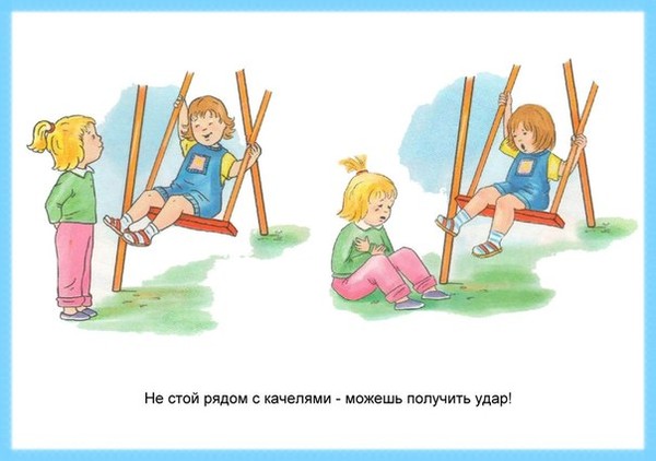 Тәрбиеленушілерді қауіпсіздік ережелерімен таныстыру. Ойын алаңдарындағы жалпы қауіпсіздік ережелері: - Құлап кетпеу және басқа балалармен соқтығыспау үшін тым жылдам жүгірмеңіз. - Құмды, тасты немесе басқа заттарды лақтырмаңыз. - Итермеңіз, күреспеңіз, төбелеспеңіз. Әткеншекте ойнау ережелері - Әткеншекте ойнау ережелері арқандардан немесе тұтқалардан ұстап тербелу керек. - Әткеншек үстінде тұруға немесе одан секіруге болмайды. - Түсер алдында әткеншек толық тоқтағанша күтіңіз. Сырғымада өзін-өзі ұстау ережелері: - Аяғыңызды алға созып, отырып сырғанаңыз. - Сырғыманың көлбеу бөлігіне көтерілмеңіз. - Төмен түспес бұрын сырғыманың төменгі жағында ешкім жоқ екеніне көз жеткізіңіз. Карусельдегі тәртіп ережелері: - Айналған кезде тұтқалардан ұстаңыз. - Айналып жатқанда, карусельден түсуге тырыспаңыз. Құм жәшігіндегімінез-құлық ережелері: - Басқа балаларға құм шашпаңыз. - Ойыншықтарды немесе басқа заттарды тым терең жерге көмбеңіз. |