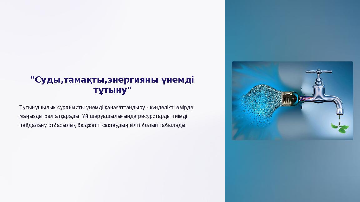 Табиғи ресурстарға ұқыпты қарау — бұл біздің баламыздың болашағына деген қамқорлығымыздың белгісі. Балаларымызды үнемшіл болуға тәрбиелеп, оларды табиғатқа жауапкершілікпен қарауға үйрету арқылы біз жарқын әрі тұрақты болашақ қалыптастыруға өз үлесімізді қосамыз. Табиғат — біздің үйіміз! Үнемдеуді үйренейік, табиғатты қорғайық! |