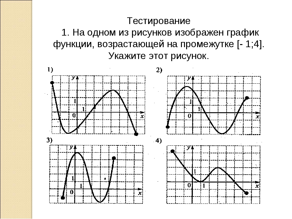 10.3.1.4 уметь описывать по заданному графику функции ее свойства: