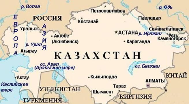 Выполните необходимые измерения и запишите результаты. Определите расстояние на местности от Караганды до Павлодара, если масштаб карты 1:40 000 000. Ответ запишите в километрах.