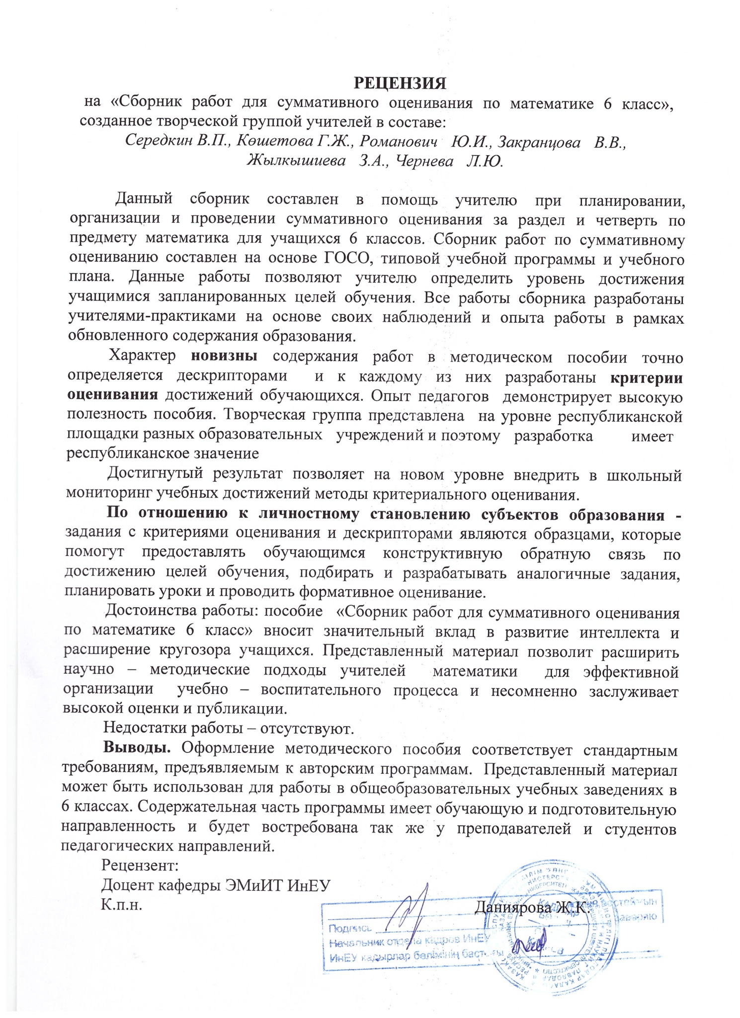 В помощь учителю математики Сборник работ для суммативного оценивания по математике 6 класс |