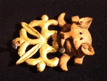 1. Зернотерка, 2. Лук и стрелы, 3. Ткацкий станок, 4. Дротик, 5. Гарпун, 6. Бифас, 7. Гарпун, 8. Силки, 9. Мотыга, 10.Плуг, 11. Удила и стремена, 12.Керамика.