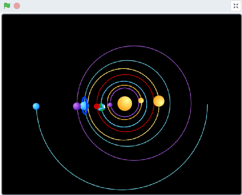 Cурет 2. Күн жүйесінің Scratch бағдарламасындағы сандық моделі