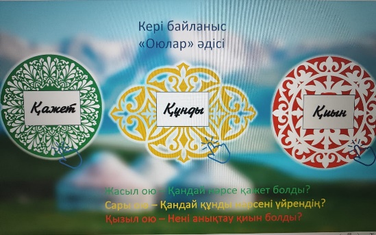 Мұғалім оқушылар жауабын мұқият тыңдап кері байланыс беріп отырады ҚБ: Мадақтау сөздері! Жарайсың! Керемет! Тамаша! |
