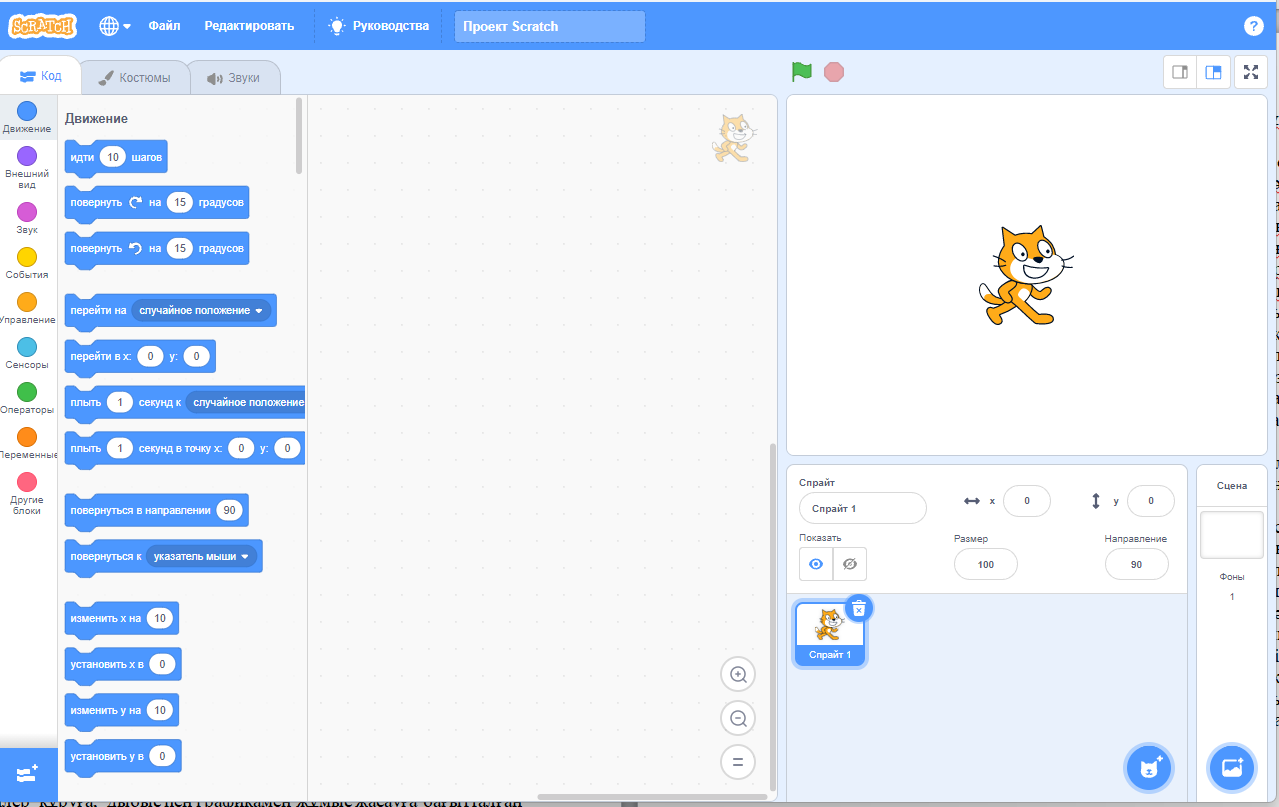 Сценарий блогында конструкциялар (бетбелгілер) деп аталады: Сонымен қатар сценарийлер , костюмдер , дыбыстар осы қойындылардың әрқайсысын жеке-жеке таңдаған кезде қажетті командалар, дисплей, дыбыс дизайны, әрекеттер және көптеген басқа бөлімдер пайда болады. Сонымен, «қозғалысы» параметрін басу арқылы сізге қажетті кеңістікті жұмыс кеңістігіне жылжытуға жауап беретін барлық командалар көрінеді. Параметрді жеке сценарийге жылжыту қажет болса, сол жақ тінтуірдің түймешігін басып ұстап, параметрді жұмыс кеңістігіне апарыңыз. Барлық бөлімдер кірпіш түрінде салынады, бағдарламалау бойынша жұмыс кеңістігіндегі кірпіштен салынған құрылымдар барлығы оңай, қарапайым және түрлі-түсті. Қолданбаның әр пайдаланушысы бағдарламаны өздері үшін теңей алады: интерфейс тілін және т.б. өзгерту