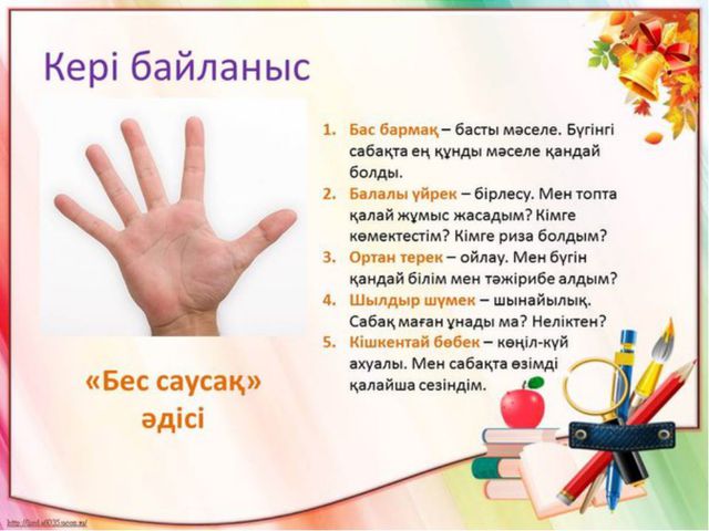 Талқылау кезінде оқушылардың айтылған пікірлері мен көзқарастары ауызша мадақтау арқылы бағаланып, сабақтың келесі кезеңінде белсенді қатысуына ынталандырады. Жарайсың!
