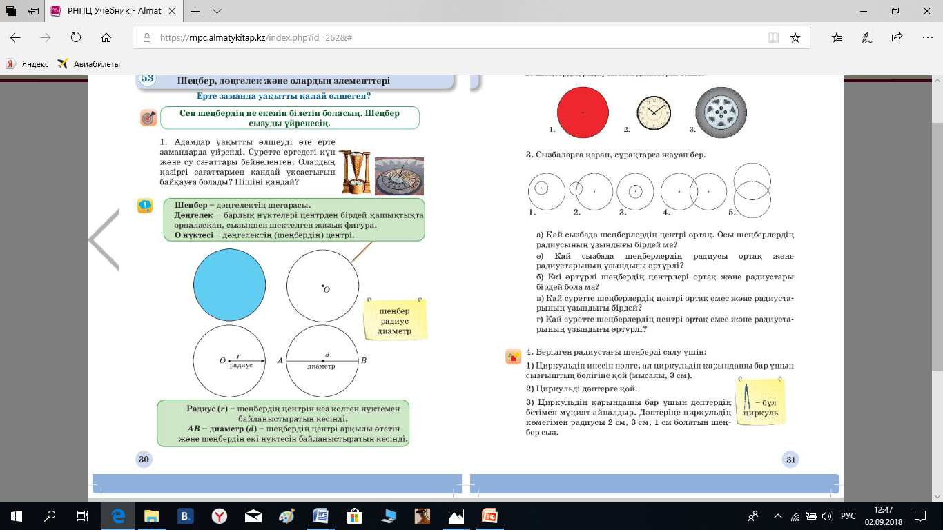 Шеңбер мен дөңгелекті салу. 3 сынып