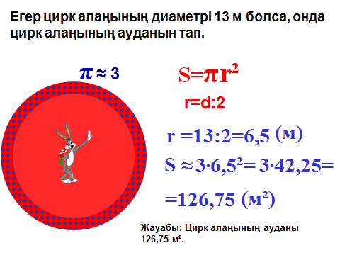 ауданын табуды меңгердік.Енді шеңбердің ұзындығын табуды, оған