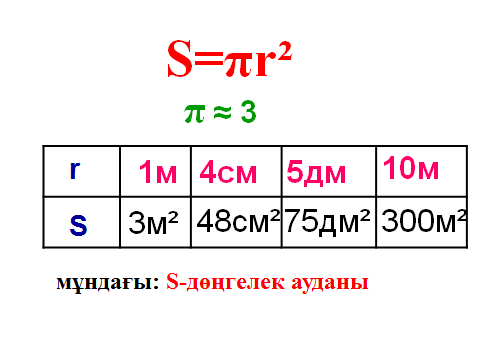 Шеңбердің ұзындығы мен дөңгелектің ауданын табу туралы білімдерін кеңейтеді. |