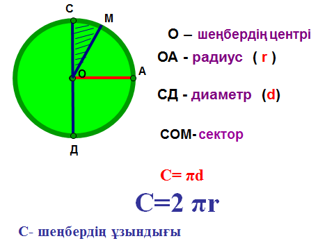 шеңбердің ұзындығы. шар. дөңгелектің ауданы.