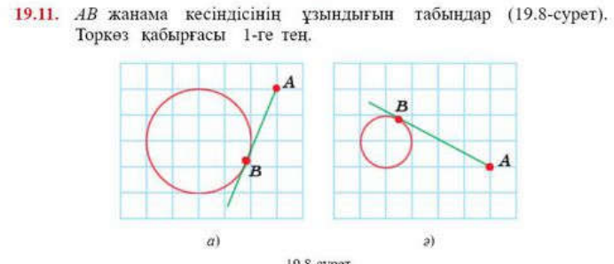 7.1.2.11 шеңберге жүргізілген жанама мен қиюшының анықтамаларын білу; 7.1.2.13 есептер шығаруда шеңбер жанамасының қасиеттерін білу және қолдану; |
