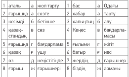 Оқылым. Айтылым. Оқулықтағы 6-тапсырманы орындатады. Төмендегі сөздер мәтіндегі қай сөздермен тіркесетінін мәтіннен тауып, оның қандай сөйлем мүшесінің қызметін атқарып тұрғанын айтқызады. |