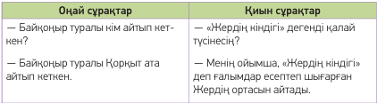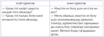 Мәтіндегі сөйлемдерге бірнеше нұсқада сұрақ қояды. Осы сұрақтарды пайдаланып, көршісмен сұхбат құрады. |