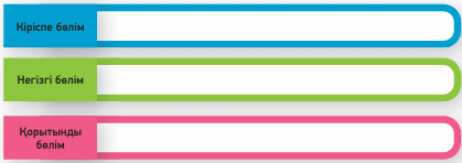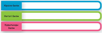 Пікір. Оқыған мәтін бойынша өз пікірін бір сөйлеммен жазады. Дәлел. Өз пікірін бір сөйлеммен дәлелдейді. Мысал. Пікірін өмірмен бай- ланыстырып, мысал келтіреді. Қорытынды. Тақырып бойын ша қорытынды жазады. |