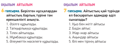 Айтылым. Оқулықтағы 5-тапсырманы орындатады. |
