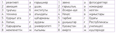 Жазылым. Оқулықтағы 5 - тапсырманы орындатады. Сөздерді сәйкестендіріп, сөйлем құрап жазғызады. |