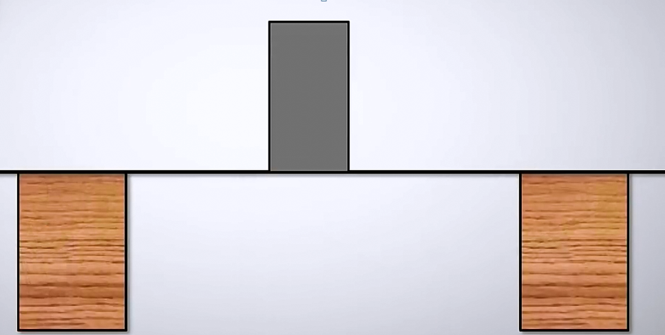 Оқушының әрекеті: (W) ойша эксперимент Жұқа тақтай екі блоктың үстіне қойылды. Егер осы конструкцияның үстіне ауыр денені қойсақ не байқалады? Жауаптары:Тақтай дененің ауырлық күші әрекетінен майысады, яғни деформацияланады