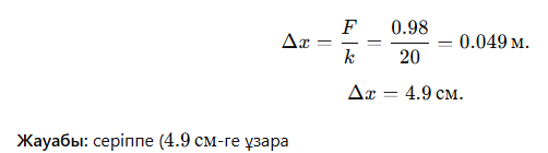 Бағалау баллы: -Есептің берілгенін жазады; -Физикалық шамаларды ХБЖ келтіреді; -Гук заңын қолданады; -Математикалық есептеулерді дұрыс жүргізіп, жауабын көрсетеді Жалпы балл -4 ҚБ: Жарайсың!