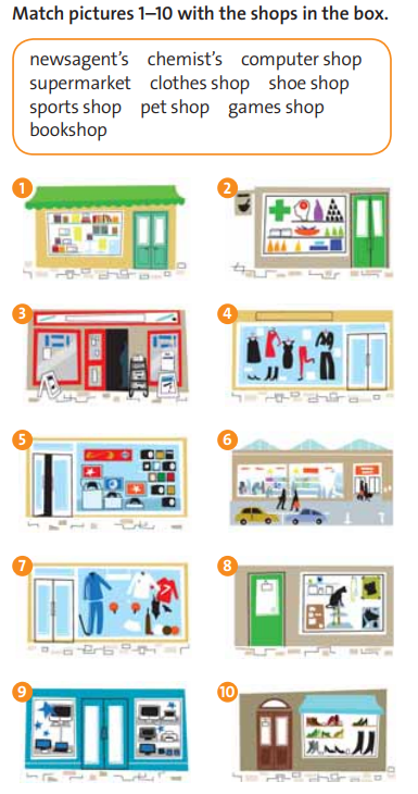 1.Fill in the blanks with the correct shop or item from the list.