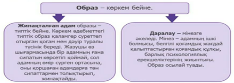 10.1.3.1 көркем шығармадағы кейіпкерлер жүйесін жинақтау мен даралау;