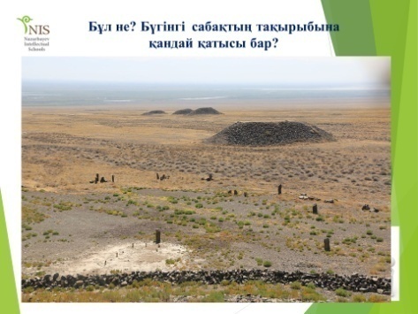 Сұрақтар қойылады. -Суреттен не байқадыңыздар? - Бұл құрылыстың ерекшелігі неде деп ойлайсыздар? - Мұнда кімдер жерленуі мүмкін?